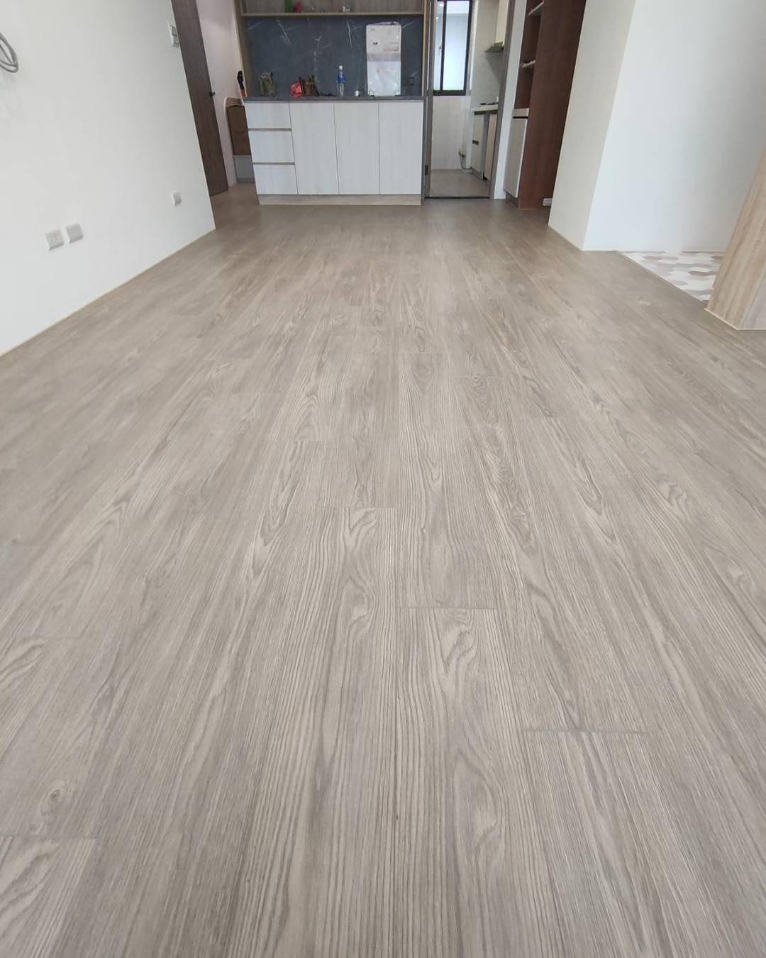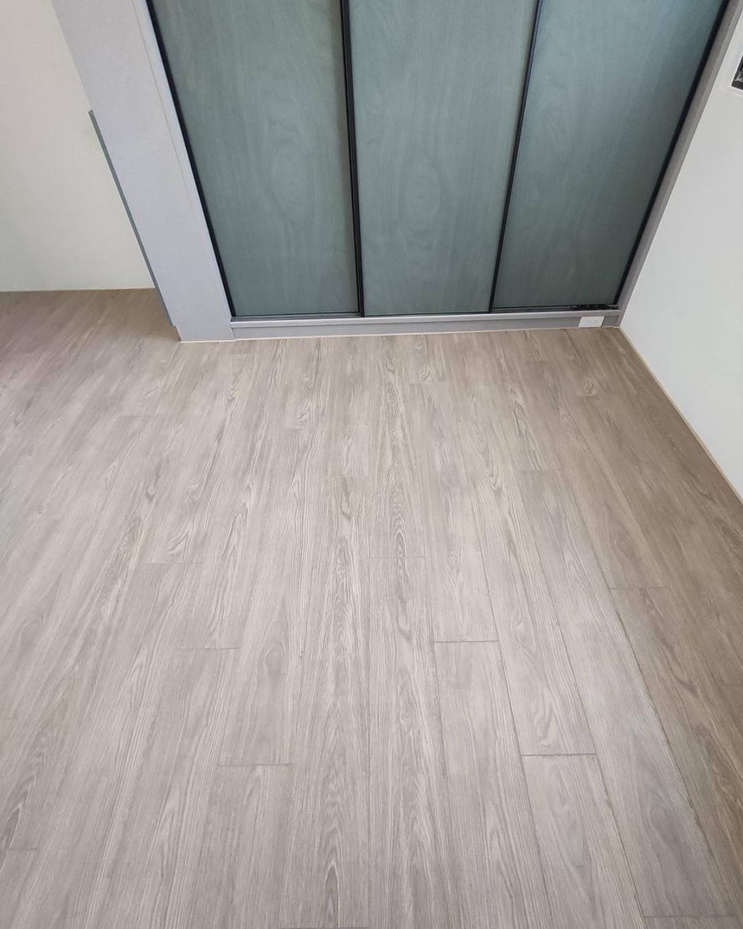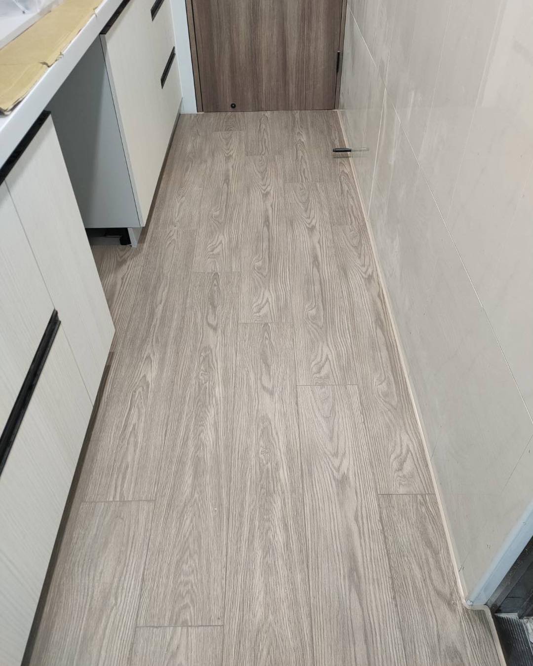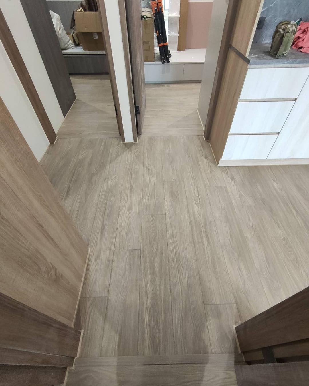 【進口超耐磨木地板】玄關搭配花磚8mm石塑耐磨地板 | 三重超耐磨木地板安裝