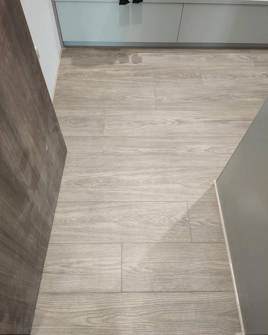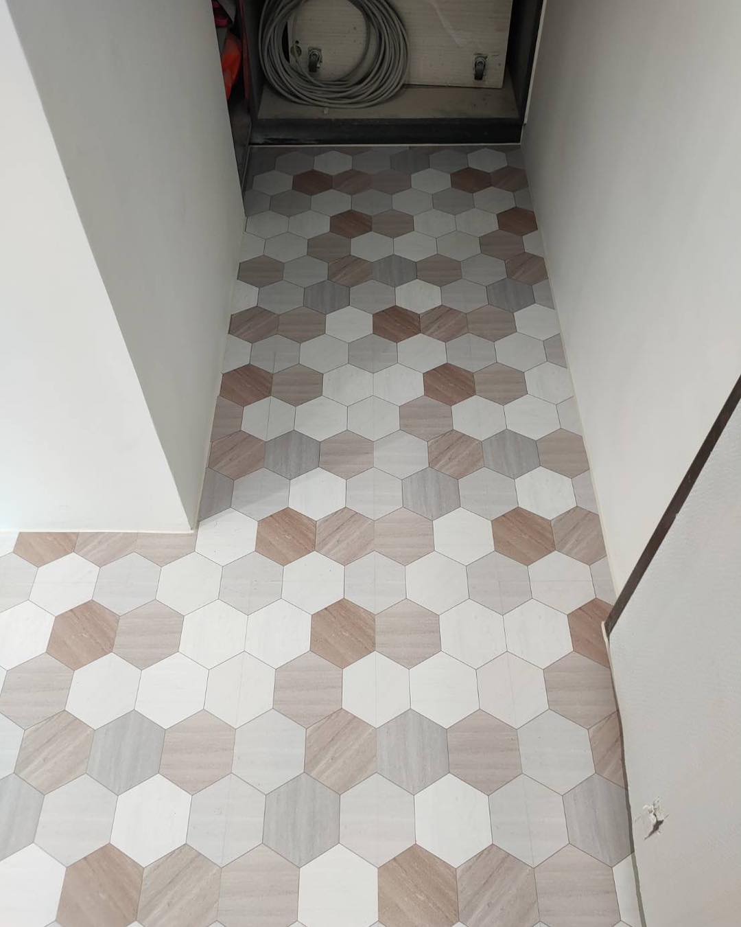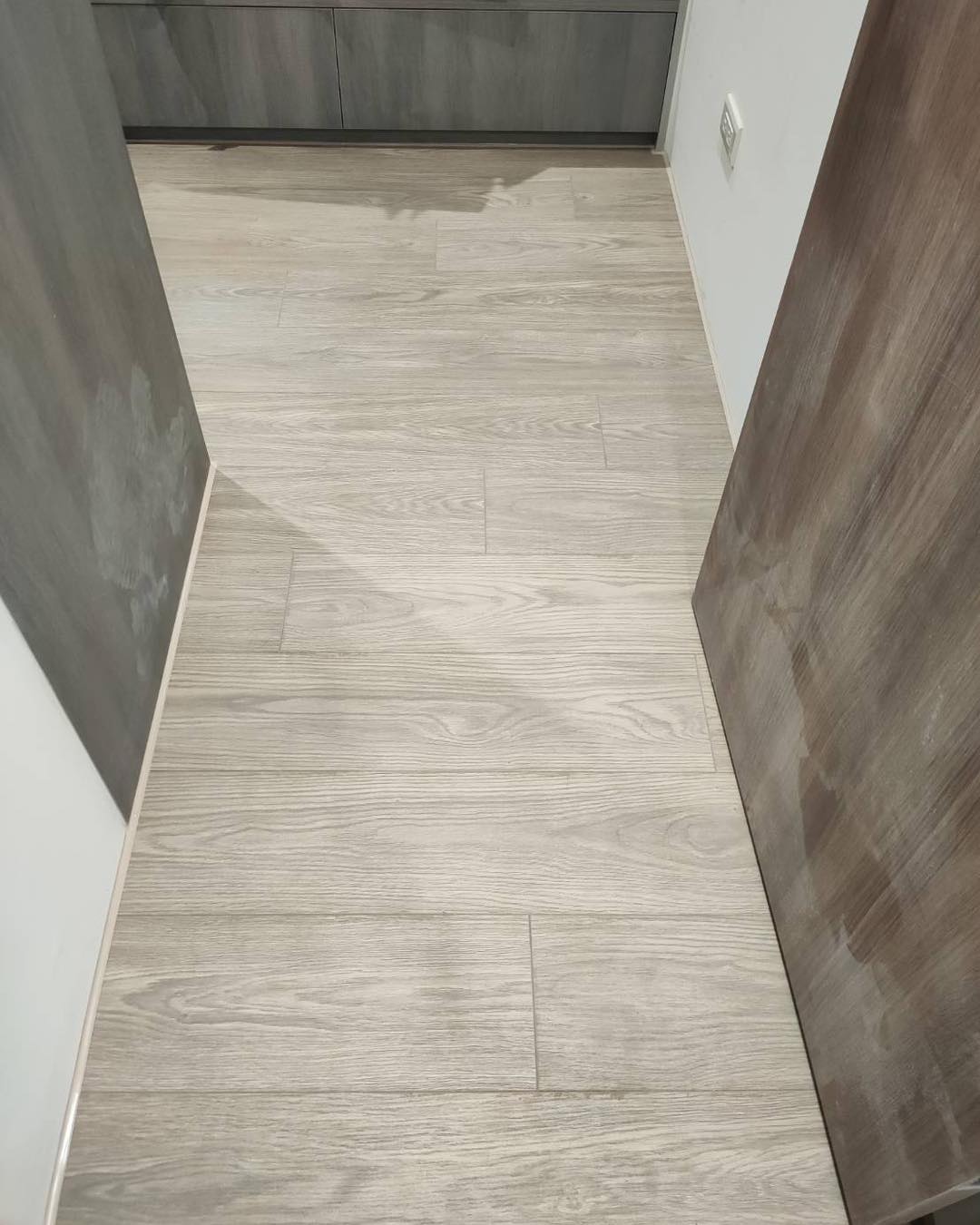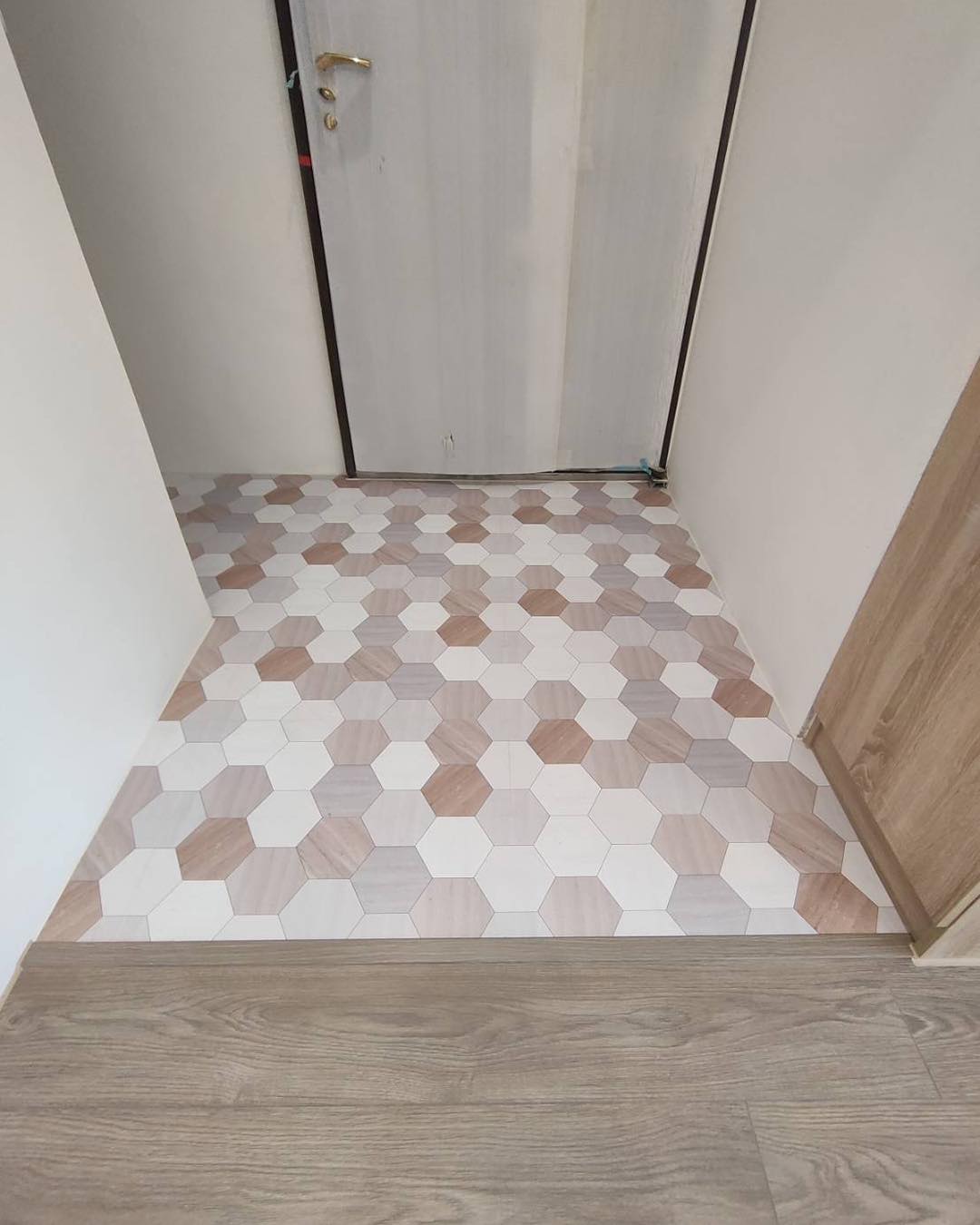 【進口超耐磨木地板】玄關搭配花磚8mm石塑耐磨地板 | 三重超耐磨木地板安裝