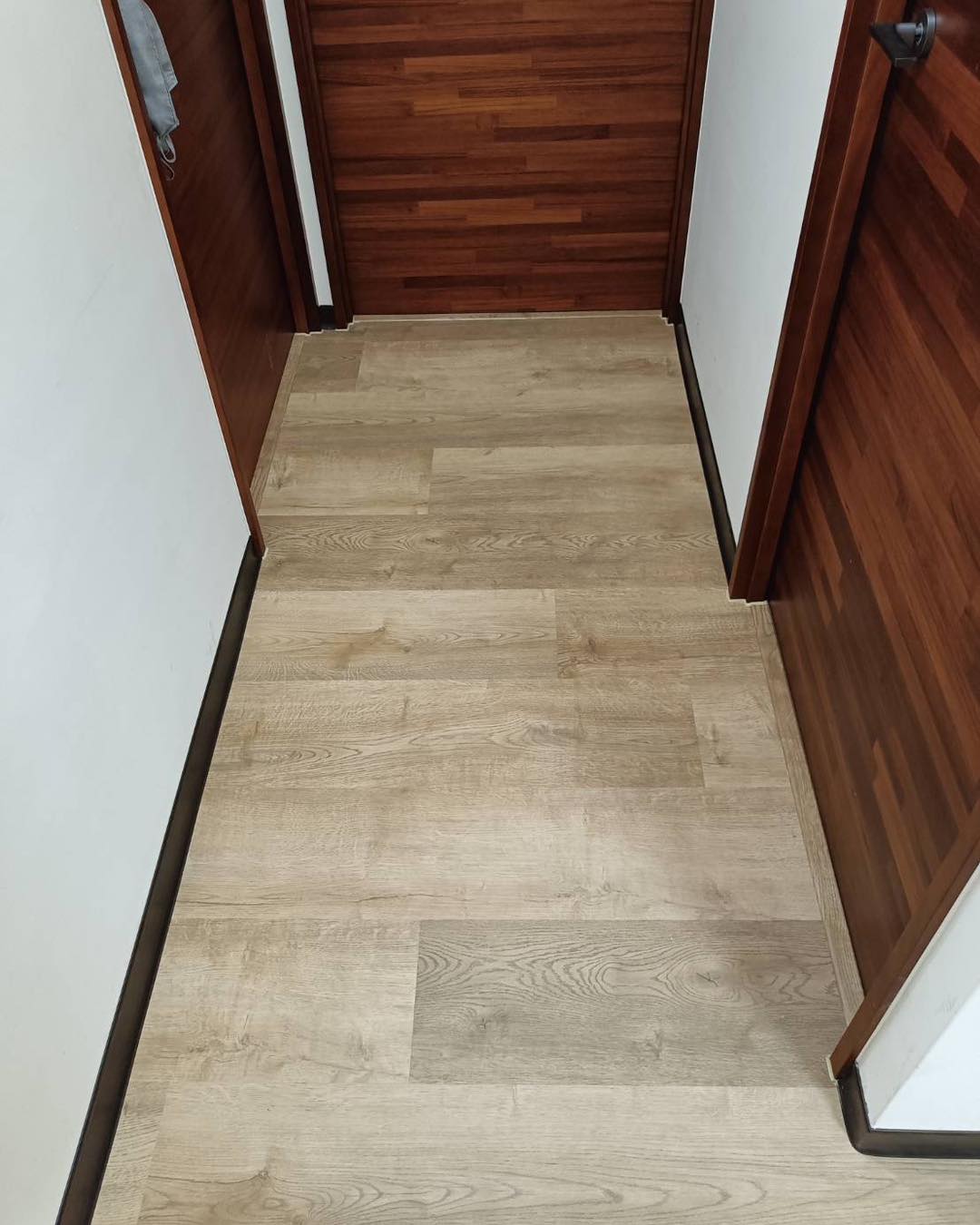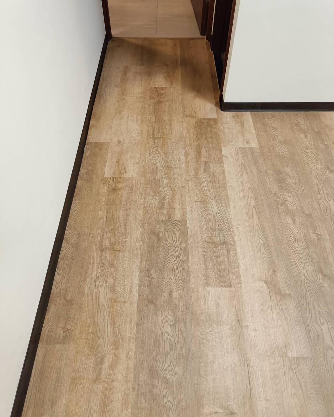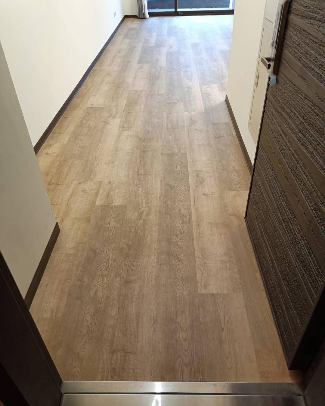 【SPC石塑防水木地板】此案場原地況為磁磚地面 選用SPC石塑防水木地板來鋪設