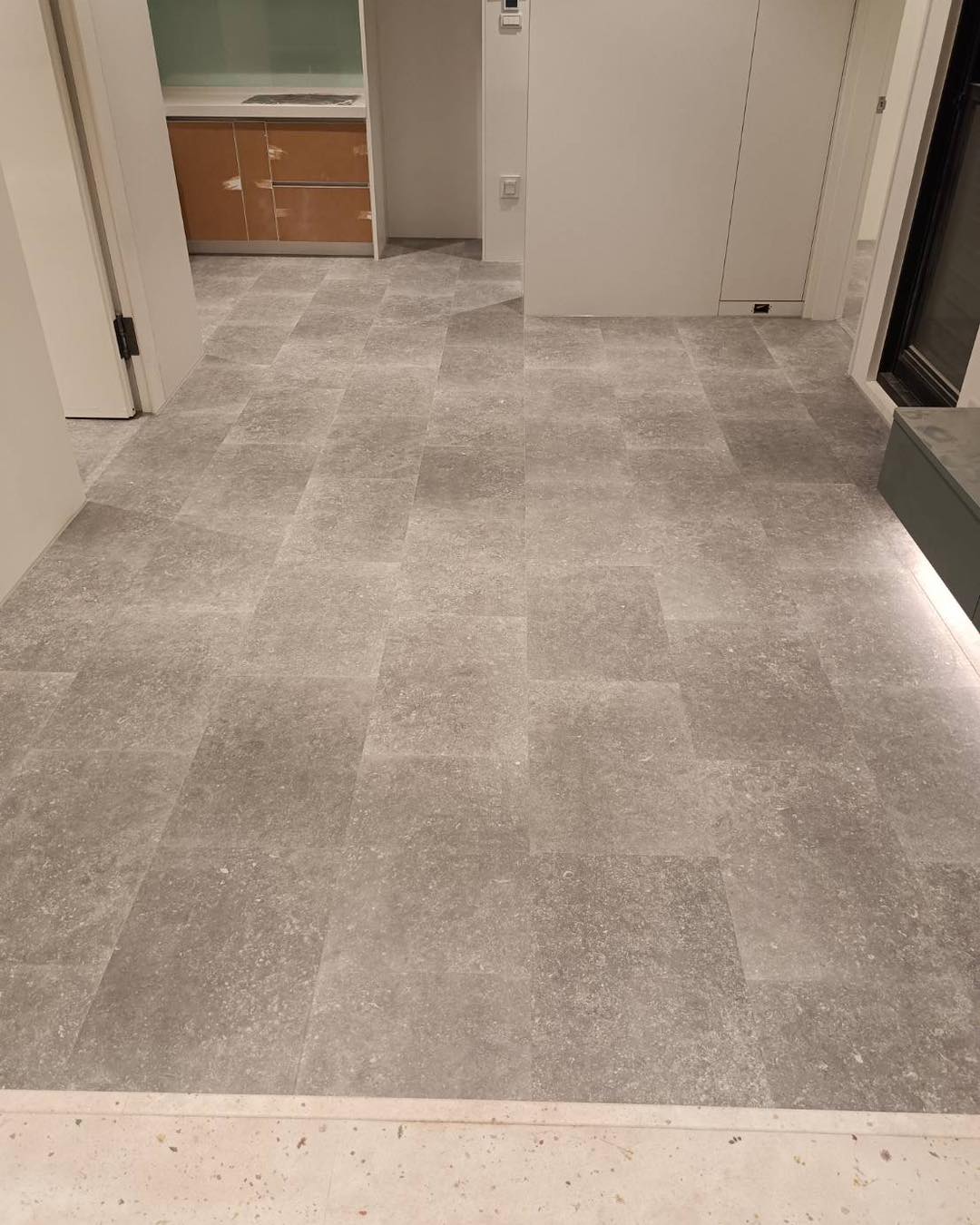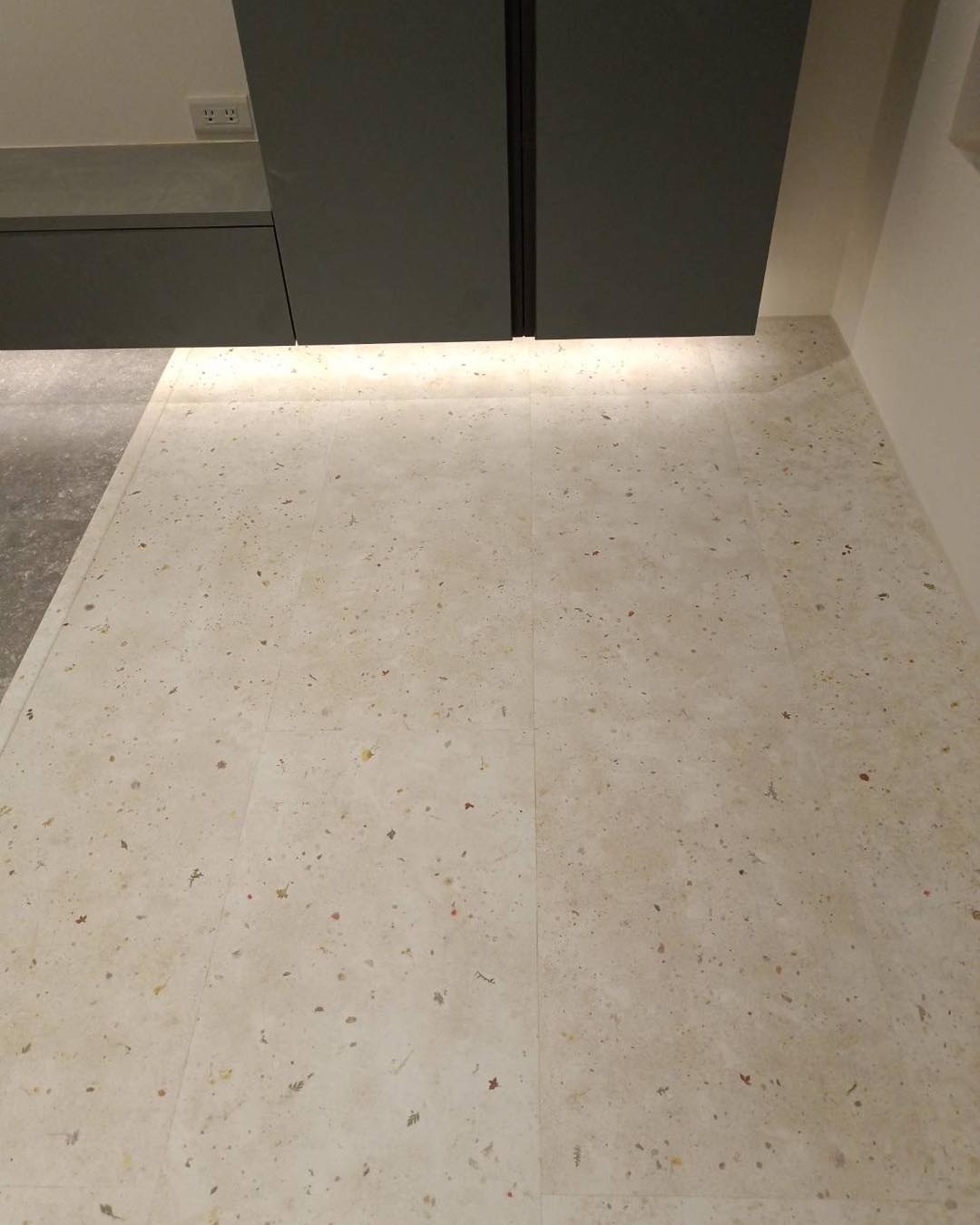 【進口超耐磨木地板】此案場原地況為磁磚地 選用進口超耐磨木地板來鋪設
