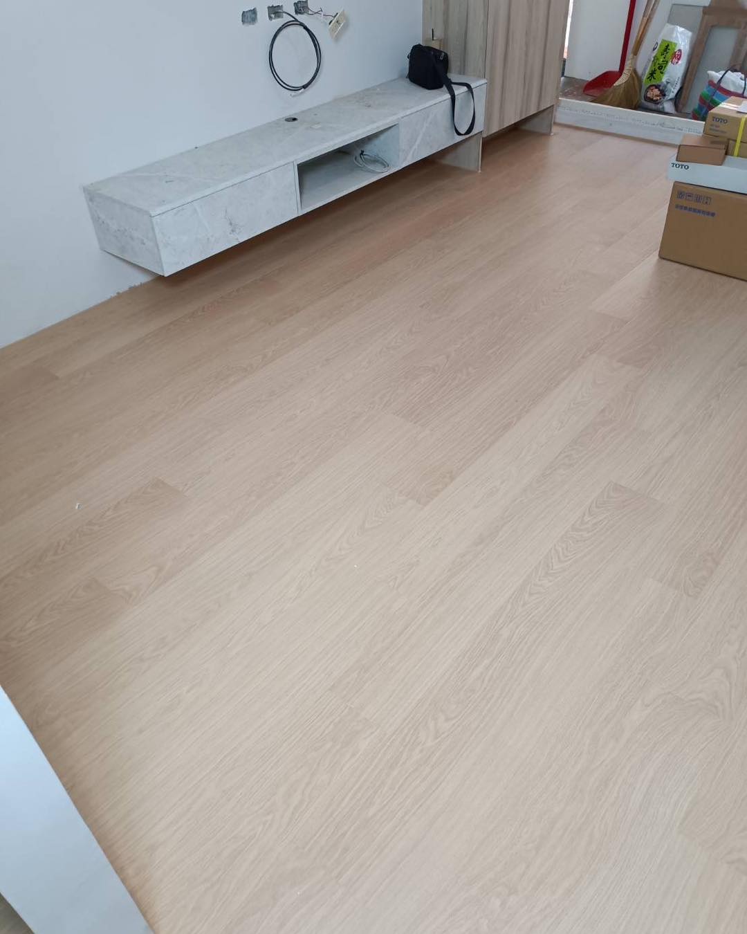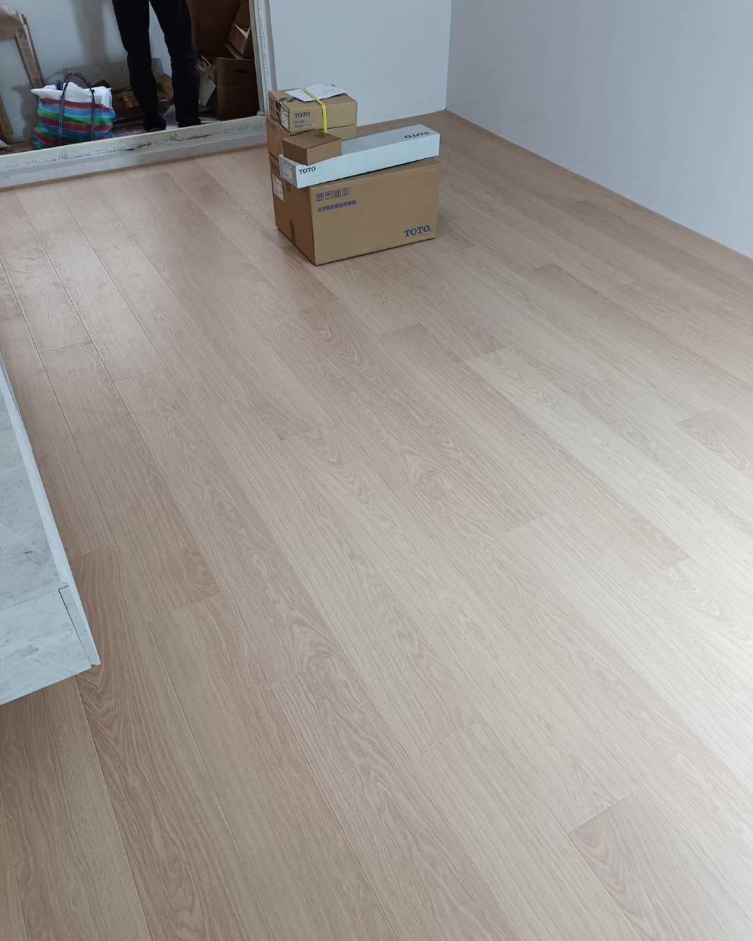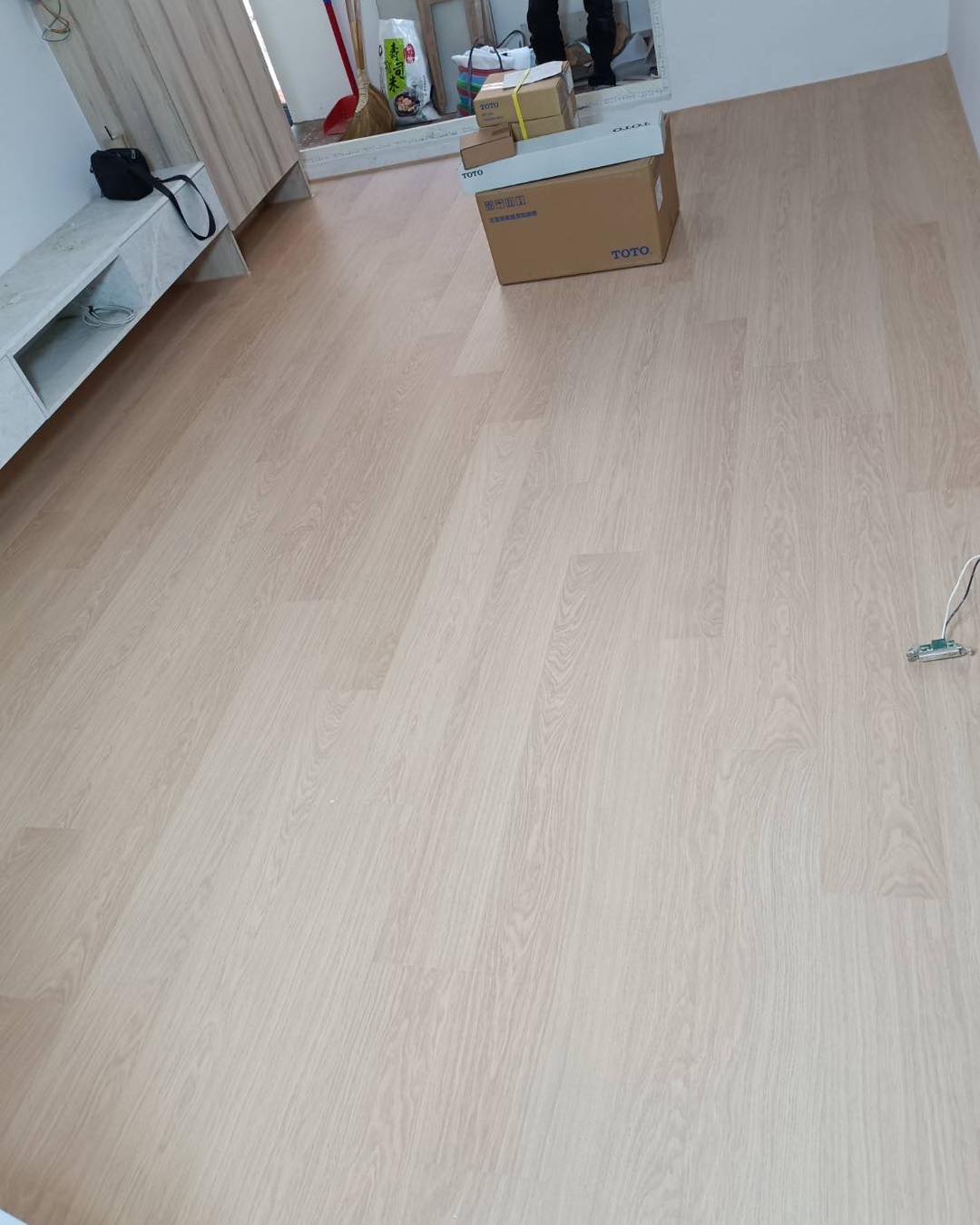 【SPC石塑防水木地板】此案場原地況為磁磚及水泥地面 選用SPC石塑防水木地板來鋪設