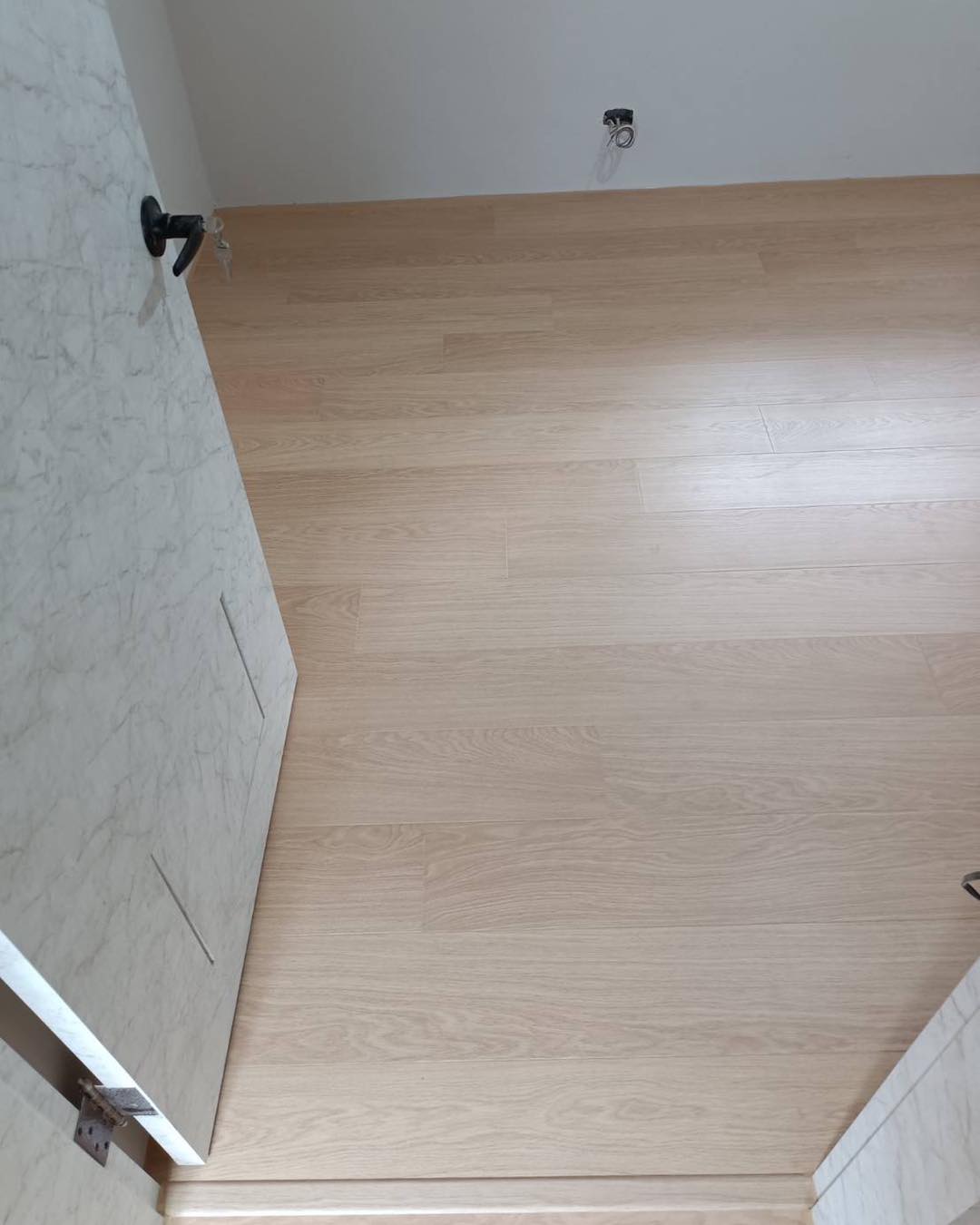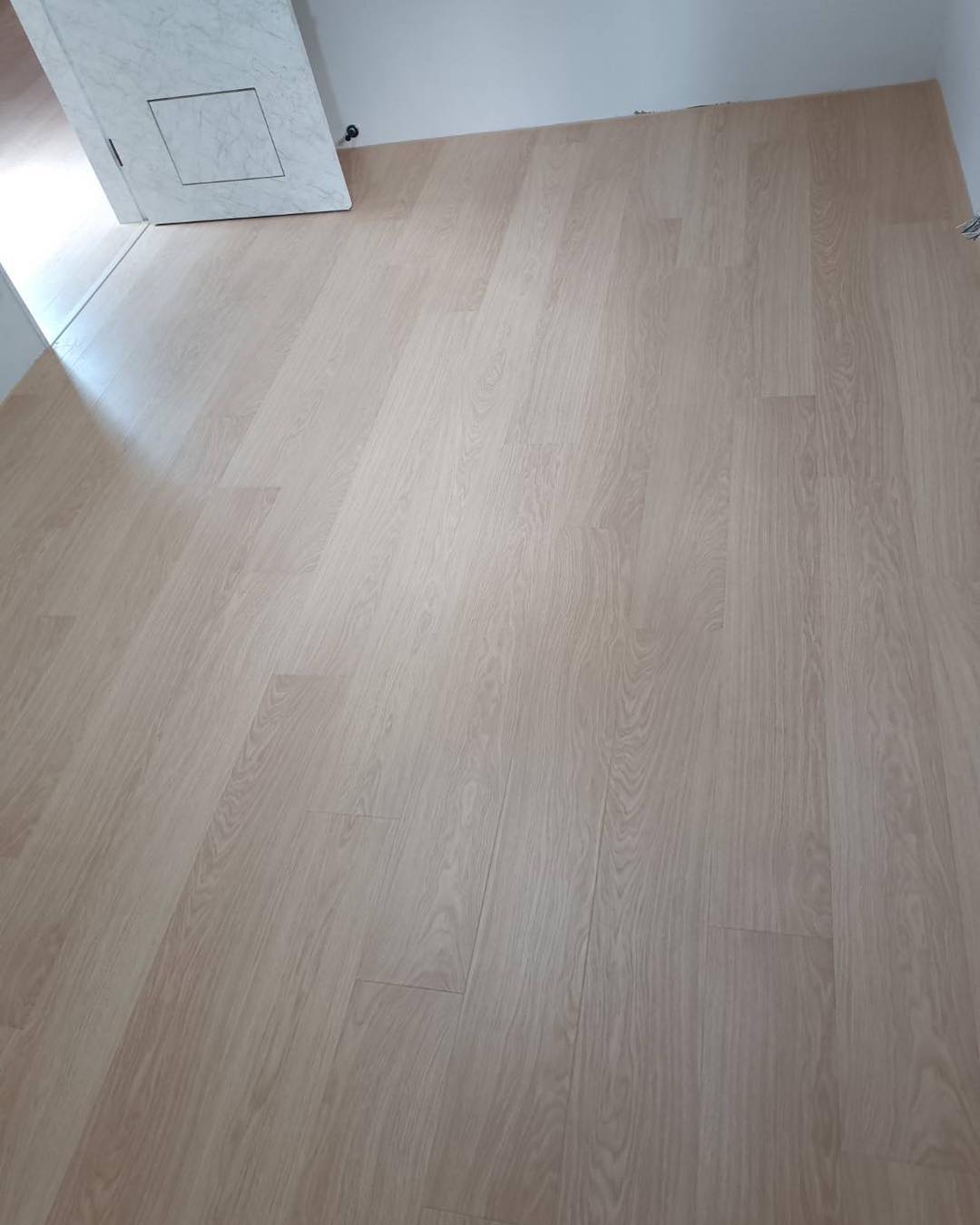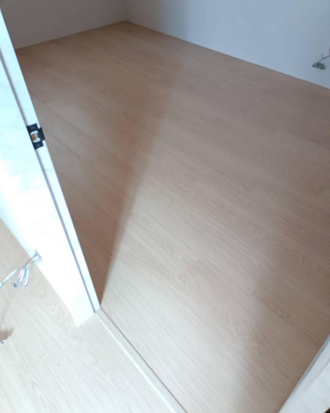 【SPC石塑防水木地板】此案場原地況為磁磚及水泥地面 選用SPC石塑防水木地板來鋪設