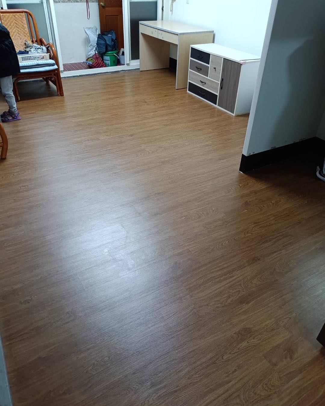【PVC塑膠貼皮地板】此案場原地況為磨石子地面 選用PVC塑膠貼皮地板