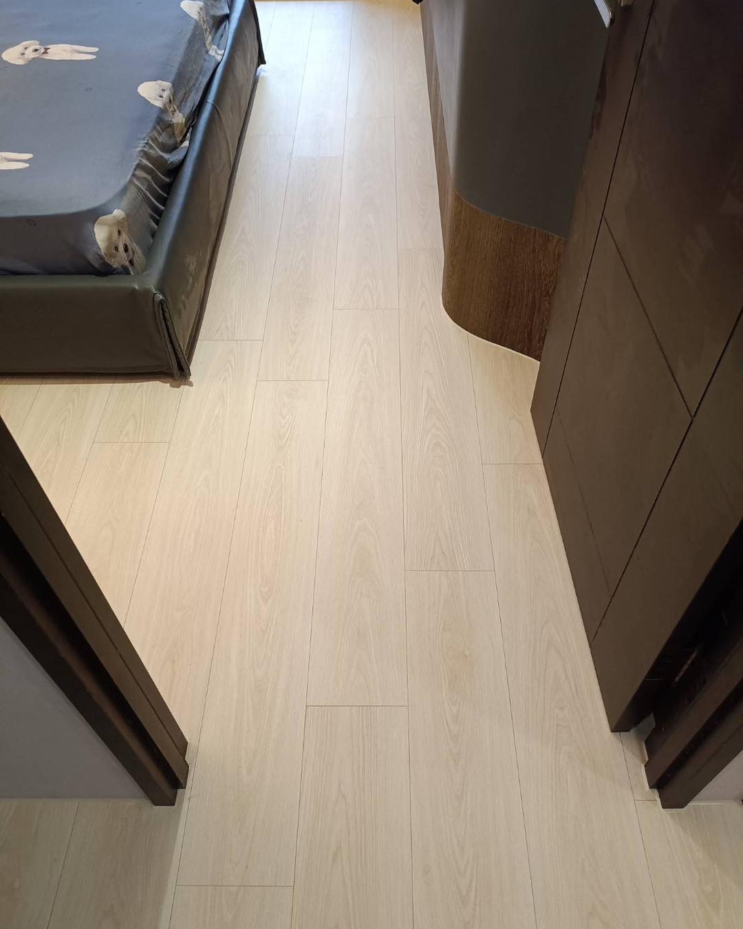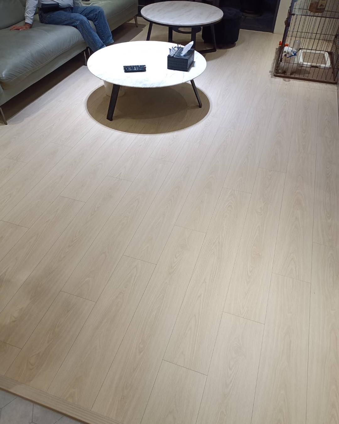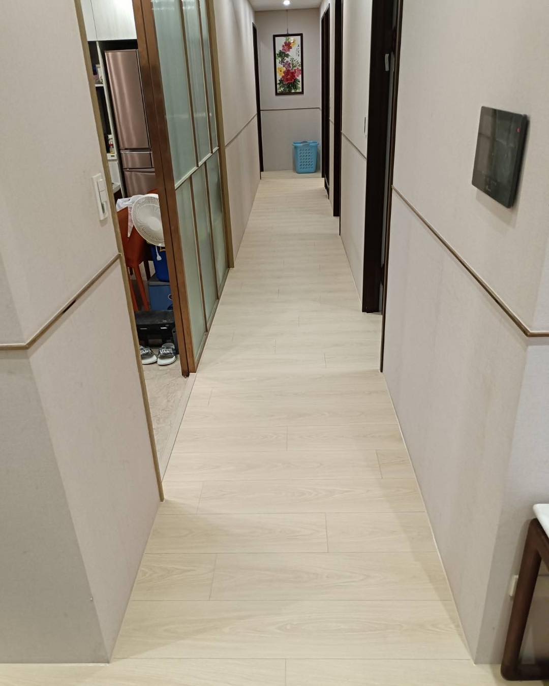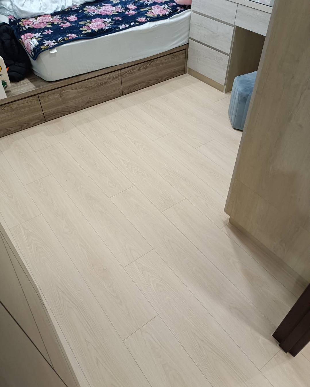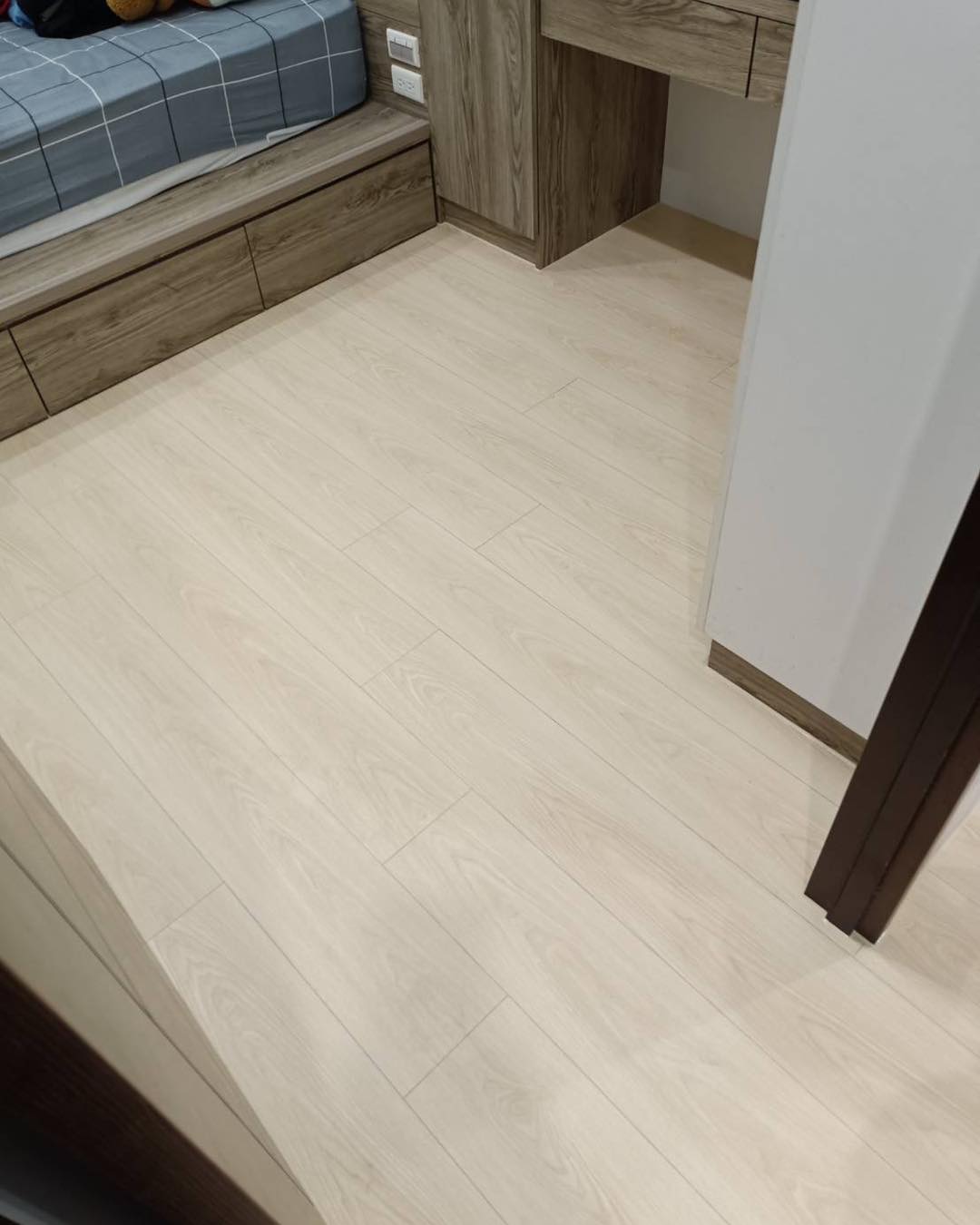 【海島型超耐磨木地板】此案場原地況為SPC石塑防水木地板 因原本地板多處卡榫損壞