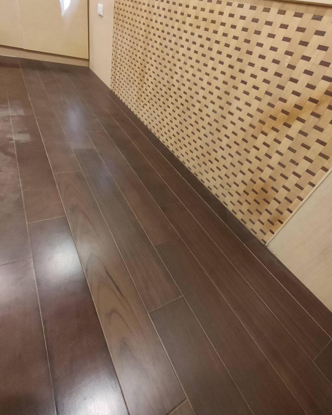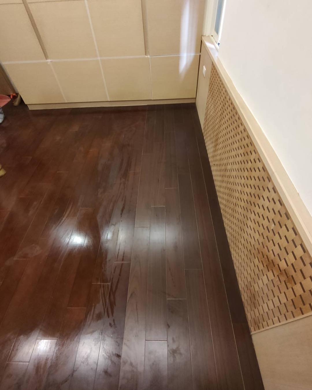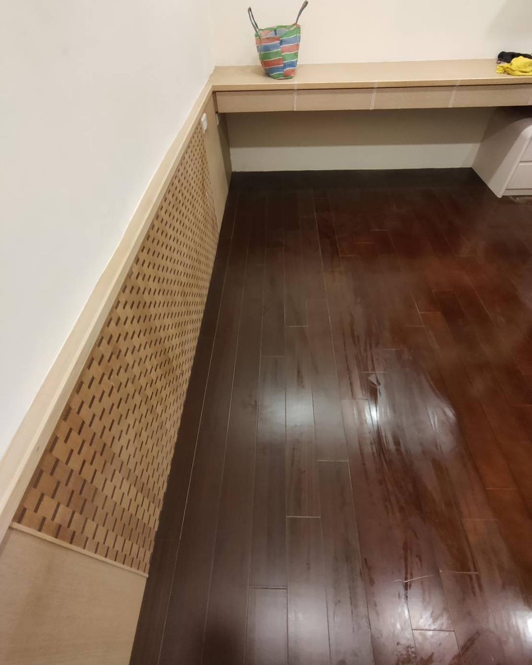 【海島型天然厚皮木地板】此案場原地況為海島型實木皮木地板 因受潮導致毀損