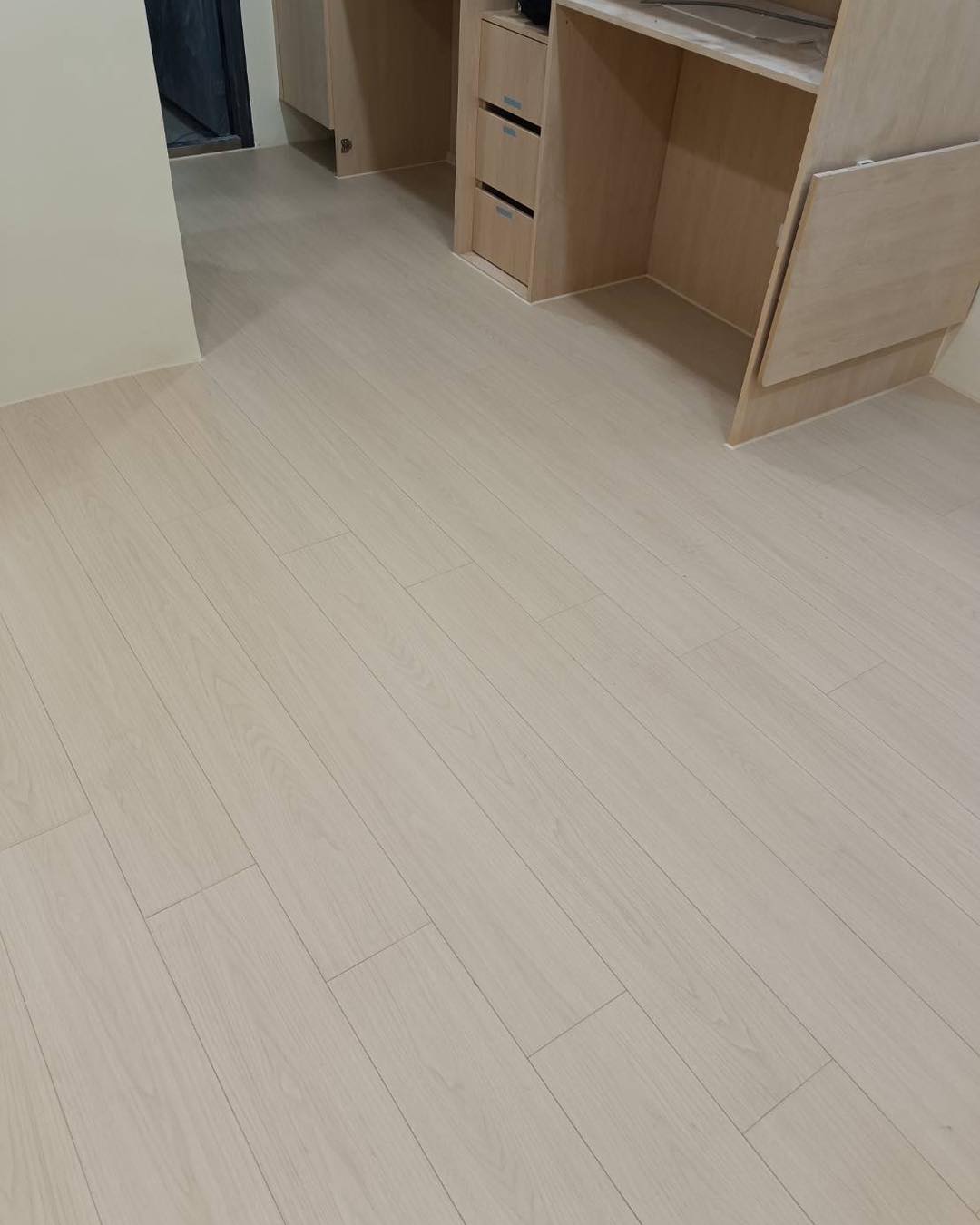 【進口超耐磨木地板】此案場原地況為磁磚地 選用進口超耐磨木地板來鋪設