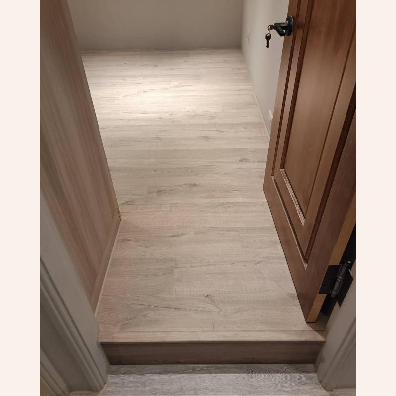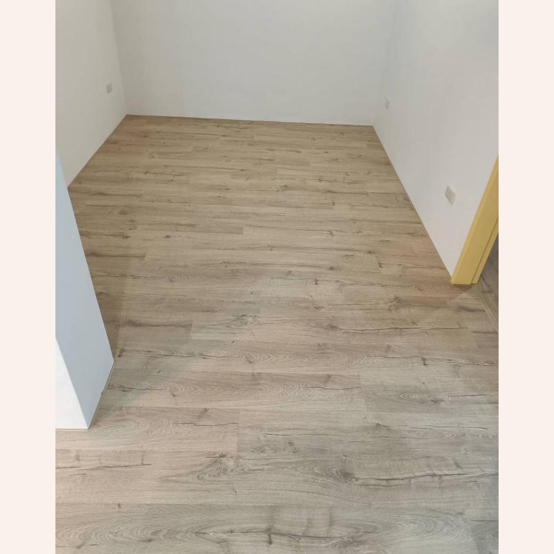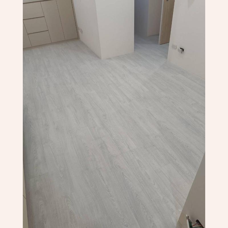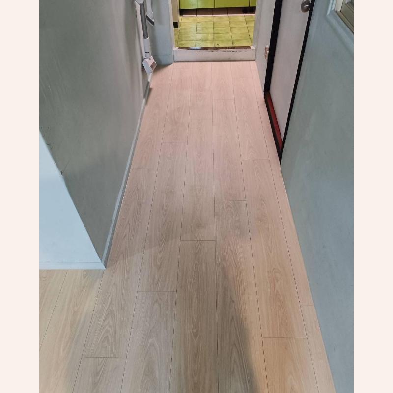 板橋區 15坪 ▫️進口超耐磨木地板 此案場原地況為磁磚地 選用進口超耐磨木地板來鋪設 最後用矽利康收邊 完工後質感
