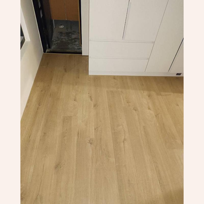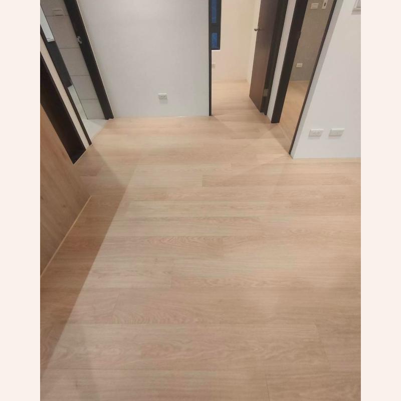 林口區 2房1廳 ▫️進口超耐磨木地板 此案場原地況為拋光石英磚 選用進口超耐磨木地板來鋪設 最後用矽利康收邊