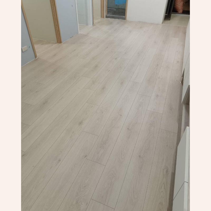 林口區 3房1廳 約14坪 ▫️進口超耐磨木地板 此案場原地況為拋光石英磚 選用進口超耐磨木地板來鋪設 型號 #Kronospan