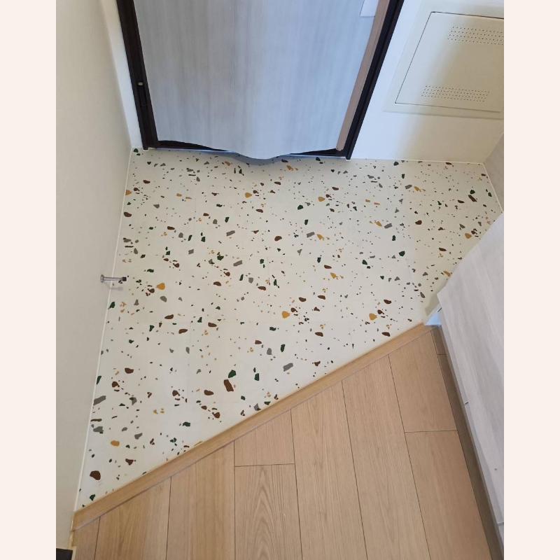 新莊區 3房1廳 約17坪 ▫️PVC塑膠地板 此案場原地況為磁磚地面 選用PVC塑膠地板來鋪設 型號 #5924 最後用透明矽利