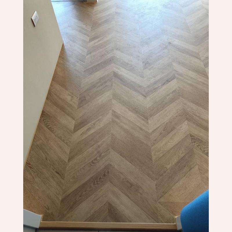 新莊區 ▫️SPC石塑防水木地板 此案場原地況為磁磚地面 選用SPC石塑防水木地板來鋪設 型號 #607 最後用原有的踢腳板及矽利