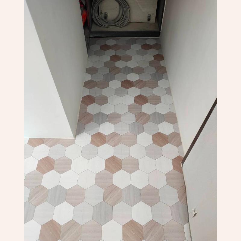 板橋區 進口超耐磨木地板/SPC石塑防水木地板 案場原地況為拋光石英磚 選用進口超耐磨木地板來鋪設 型號 #慕尼黑 玄關部分選用S